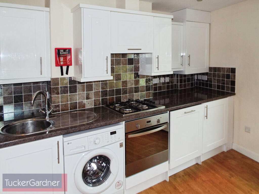 The studio flat has a luxury fitted kitchen area with a washing machine, fridge and dishwasher, shower room,hallway and a living area furnished with a fold down bed.