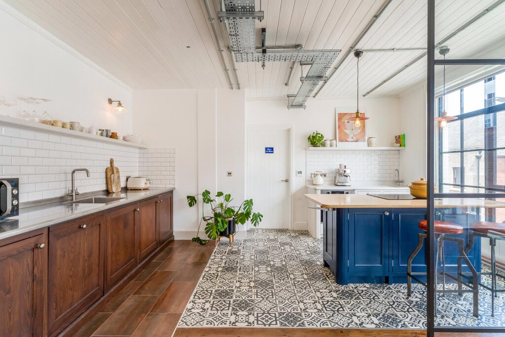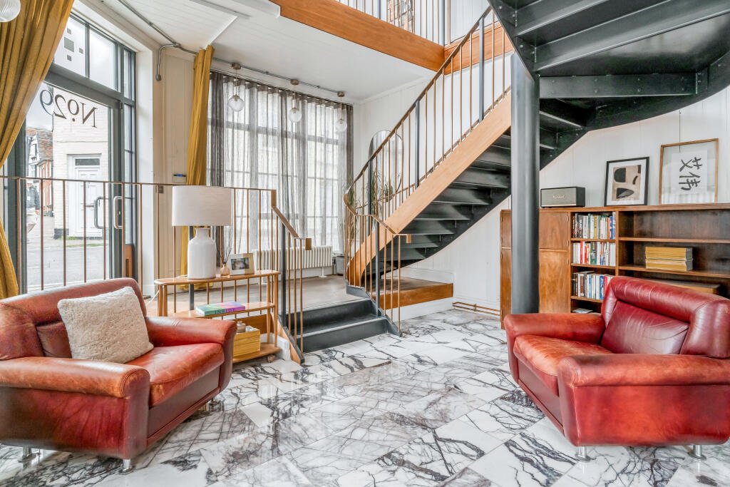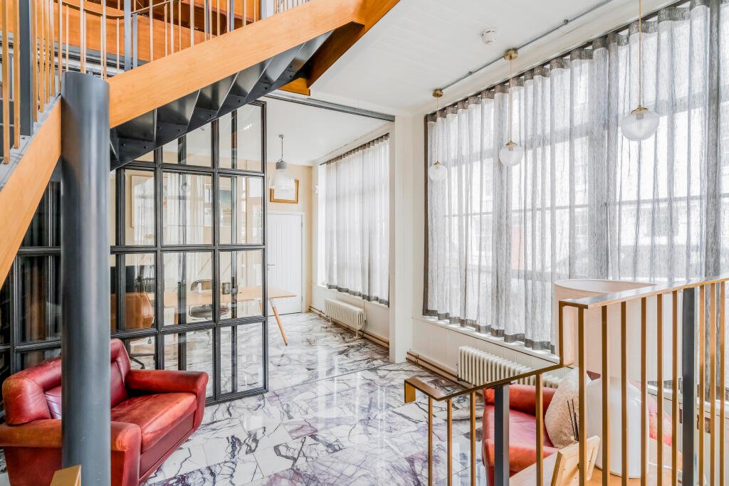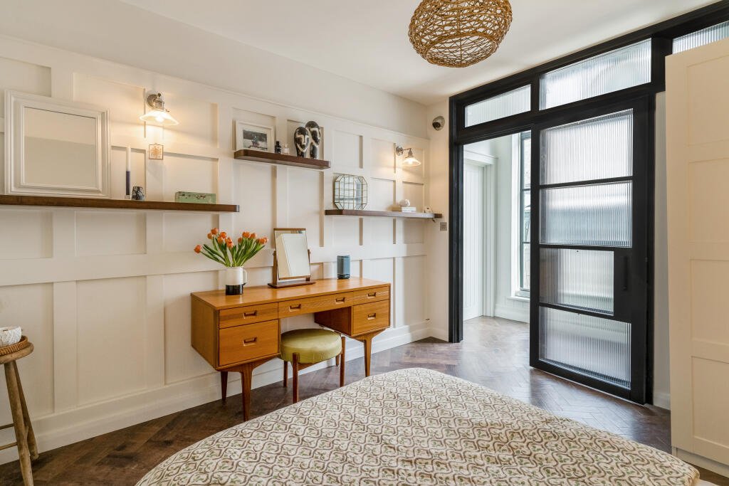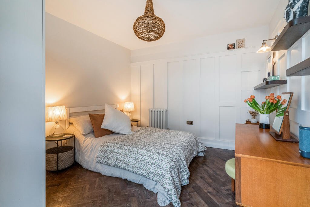 Set over two floors, this stylish home features an impressive open-plan reception and kitchen area with marble flooring, hardwood features and staircase, and air conditioning. The contemporary kitchen includes a central island and a separate utility room, creating a practical and sociable space. Both bedrooms are doubles, providing comfortable accommodation, and there are two bathrooms, adding convenience for sharers or those who like a guest space separate from the main bedroom.