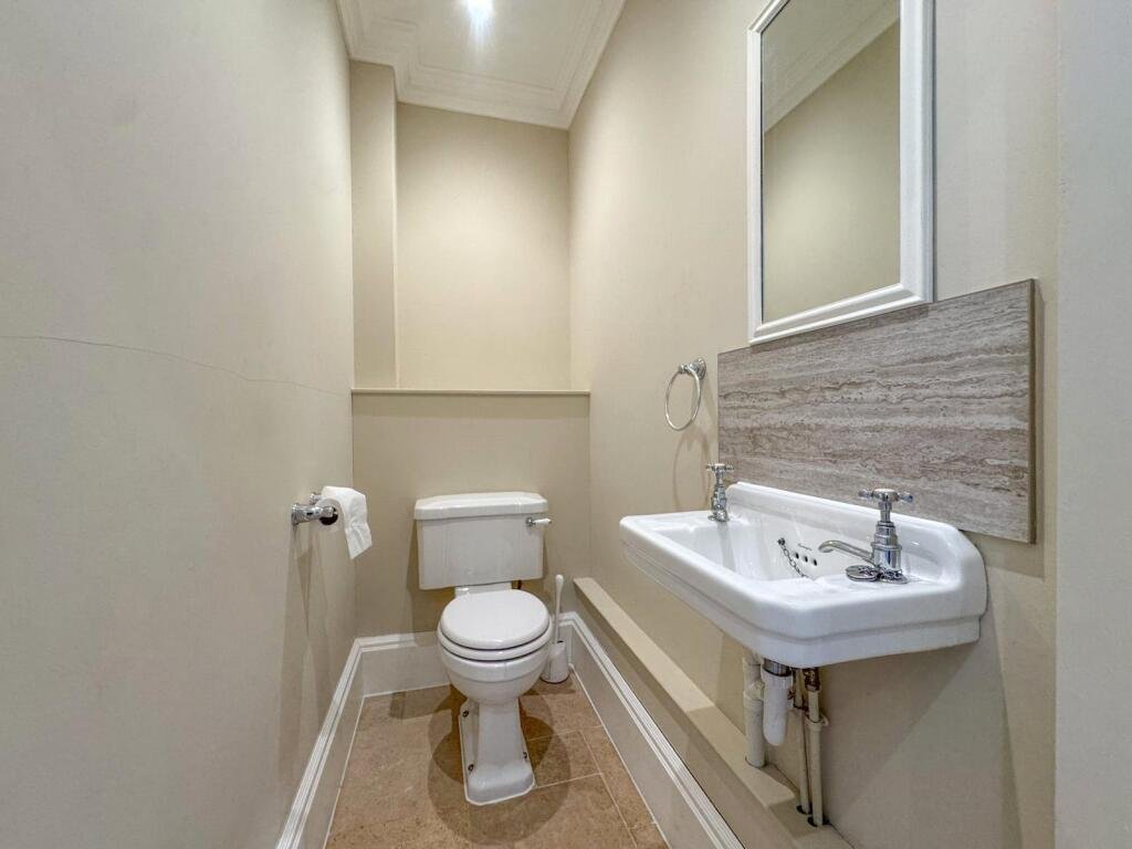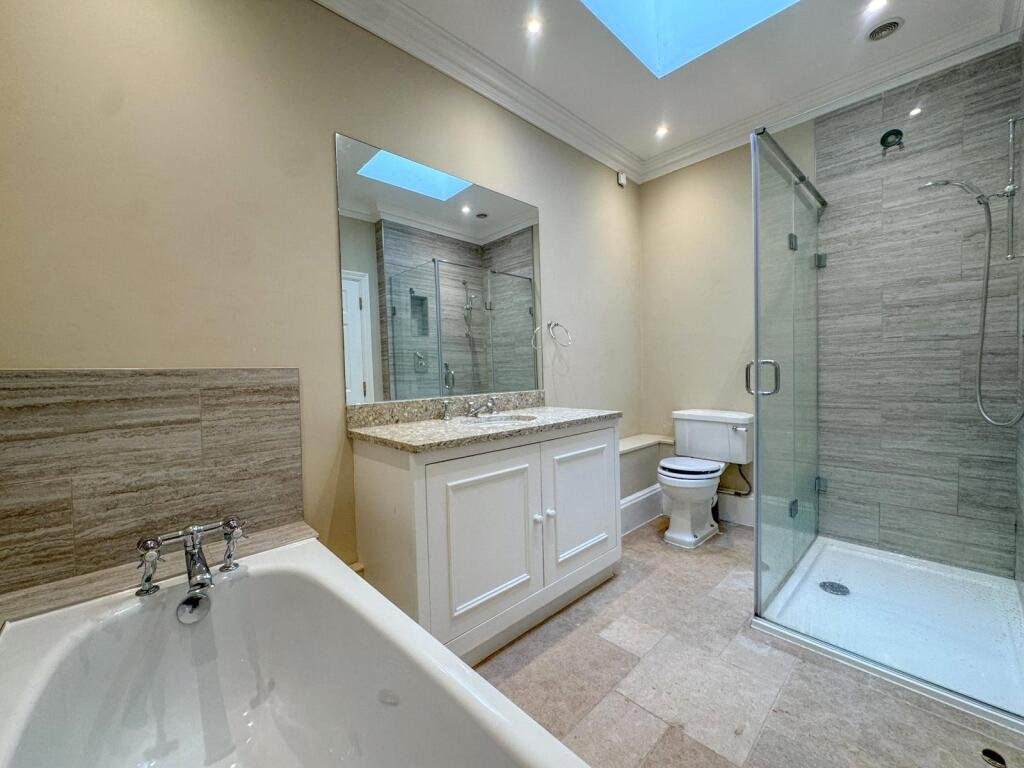 Bathroom – Fitted with a WC, vanity wash hand basin, double shower cubicle, bath, heated towel rail, and skylight window.