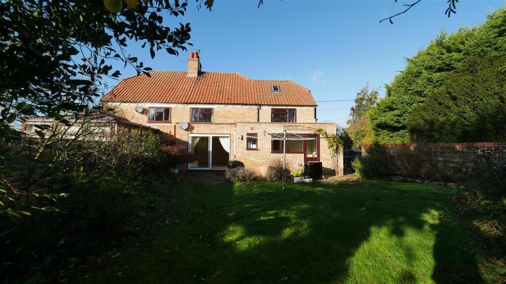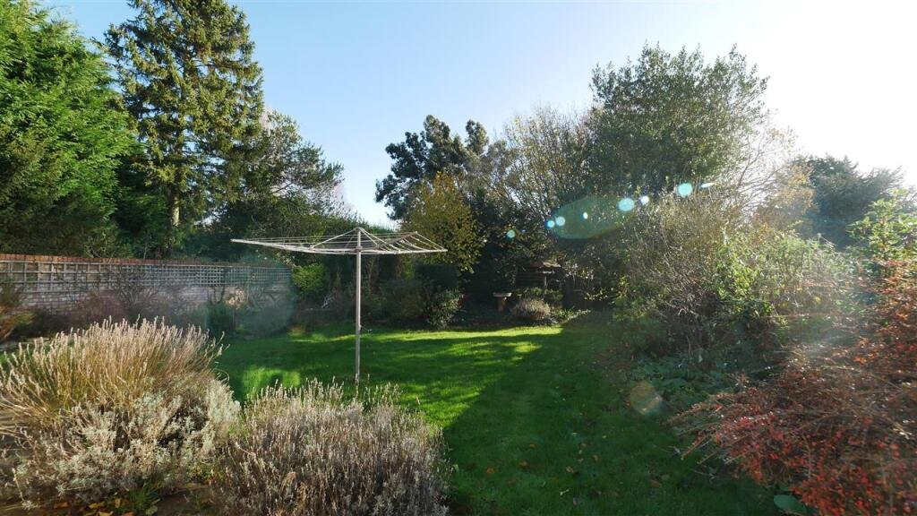 Rear garden laid mainly to lawn with shrubs with patio area. Further garden area with vegetable patch, mature free trees and shrubs