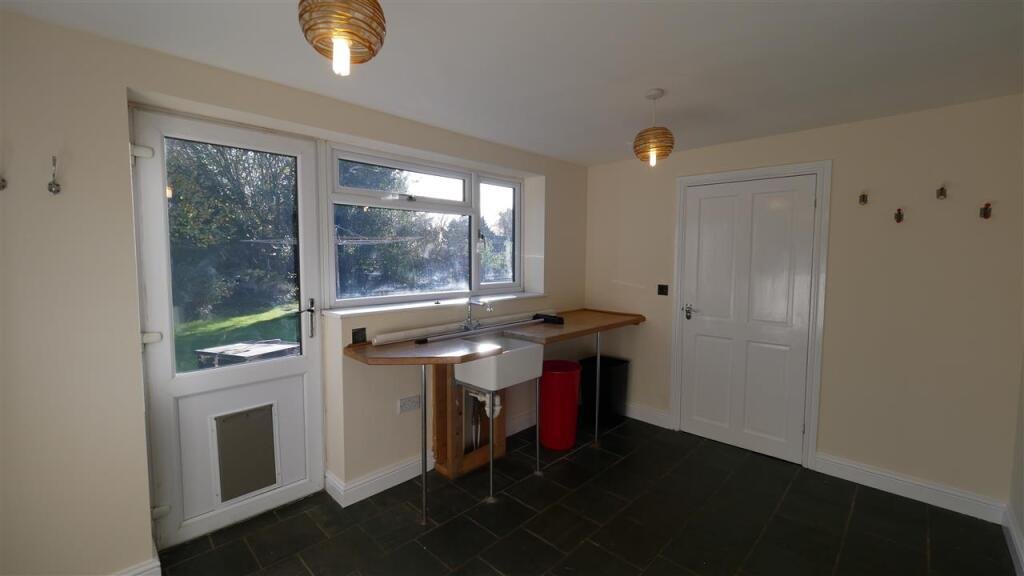 Utility Room 3.86m (12’8″) x 2.69m (8’10”)Ceramic butler sink with worktop space. Space for fridge and freezer. Natural stone flooring. Door to rear garden.