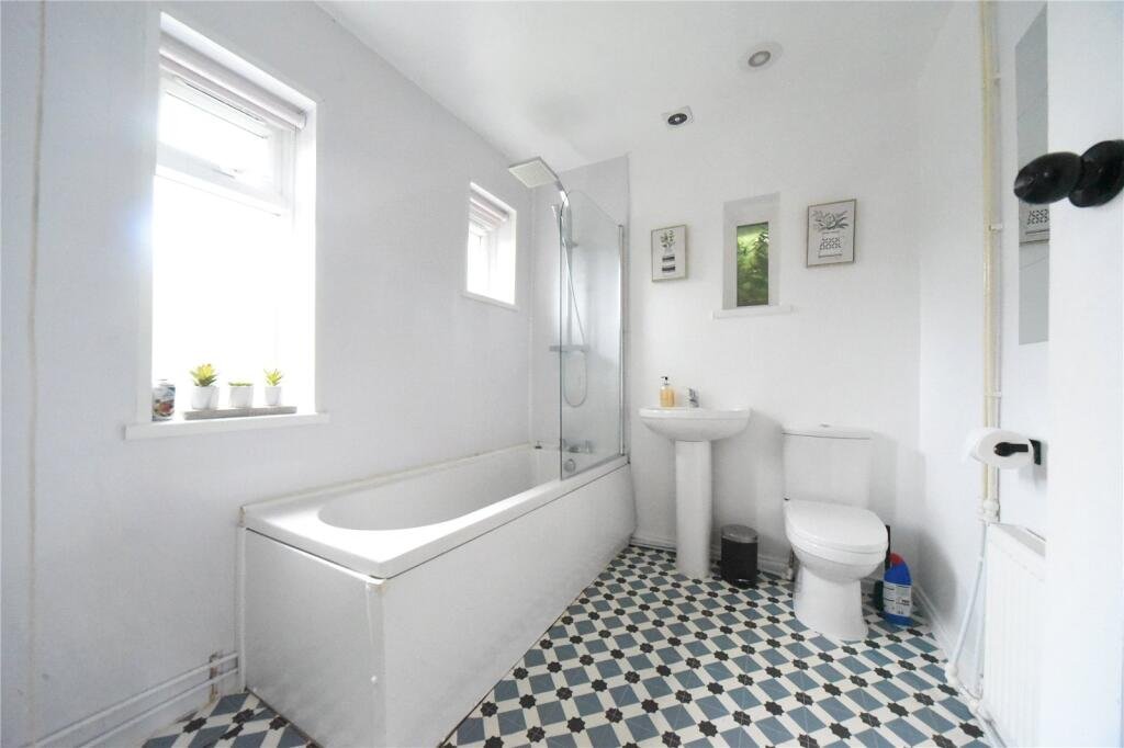and base units, oven and hob, window to rear.BEDROOM ONE:Decorative fireplace, storage cupboard, window to front x2.BEDROOM TWO:Window to rear.BEDROOM THREE:Window to rear.BATHROOM:Suite comprising of a low level wc, pedestal handbasin, bath with shower over, window to rear.