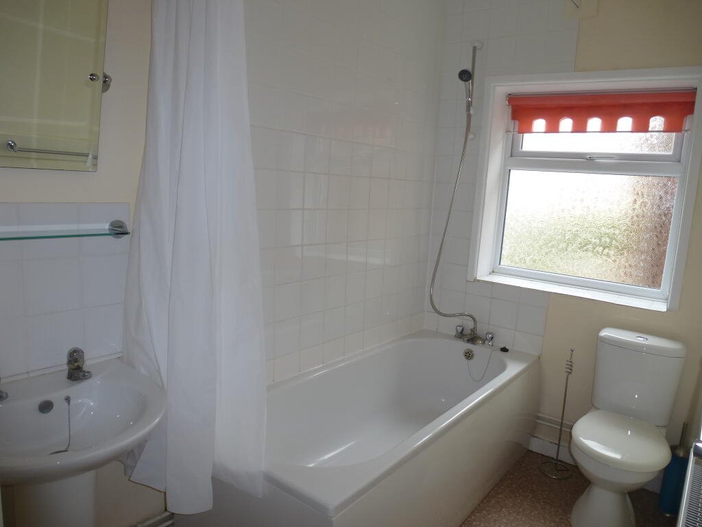 Bathroom Bath with shower over, washbasin, WC, radiator. Gas fired central heating, uPVC Windows and Doors, Outside Small rear yard with small storage shed.