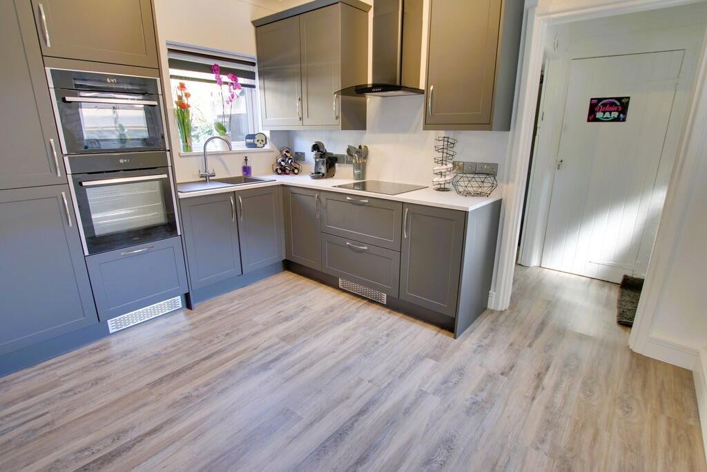 KitchenFitted with wall and base units, integral oven, hob, hood and microwave, two windows, radiator, sink unit with mixer tap.