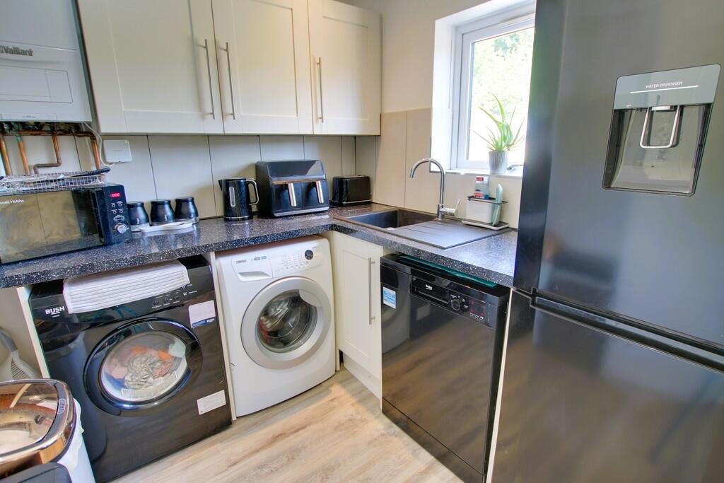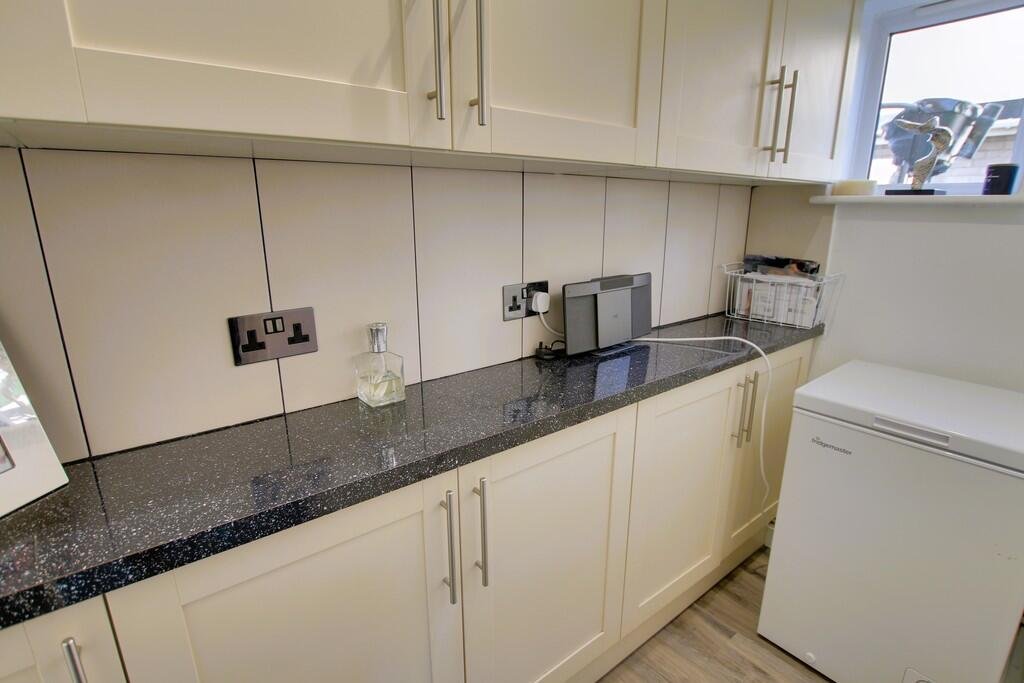 Utility RoomWall and base units with plumbing for washing machine and dishwasher, space for tumble drier, gas fired boiler, sink unit, window to rear.