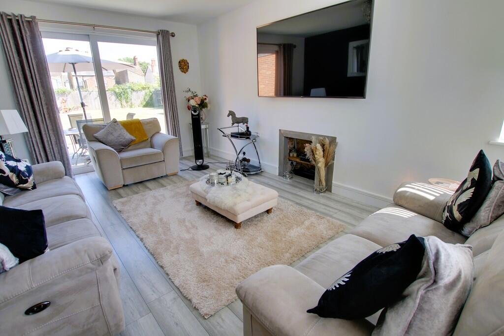 Lounge 5.45m (17’11”) x 3.62m (11’11”)Window to front, radiator, fireplace, patio doors opening to rear garden.