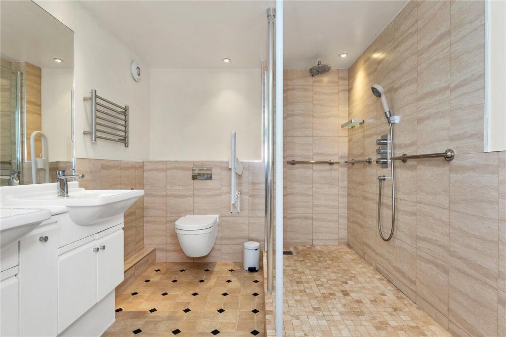 Number 5 The Oast House occupies an excellent first floor position on the south side. It offers an impressive entrance hall with two built-in double cupboards, as well as an airing cupboard. The dual aspect Sitting Room has a sliding patio door to balcony. The kitchen has been freshly re-decorated and has a range of cabinets with integrated appliances comprising a Neff 4 ring gas hob, electric double oven and dishwasher. The spacious Main Bedroom has a re-fitted En Suite Bathroom with a shower cubicle. There are two further bedrooms and a family bathroom. The central heating is gas fired. There is a lift to all the floors. Parking is in the garage allocated. Adjacent to The Oast House are formal gardens with areas of lawn, flowers, shrub beds and established trees.