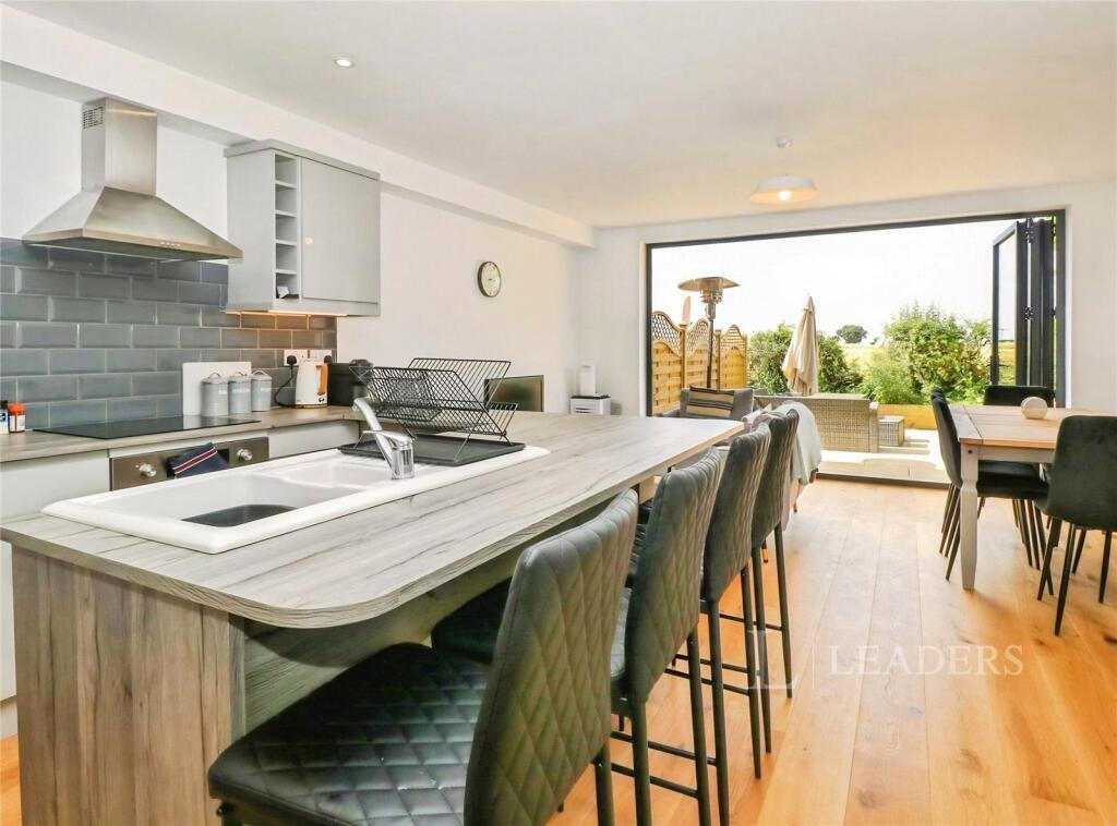 The shared accommodation includes a spacious, modern open-plan layout with a fully equipped kitchen. Features include integrated appliances, double fan oven, induction hob, Bosch cooker hood, breakfast bar and larder. Heating and hot water are provided by air source heat pumps, with underfloor heating on the ground floor and double glazed windows throughout. The property is presented with a high standard of decoration.