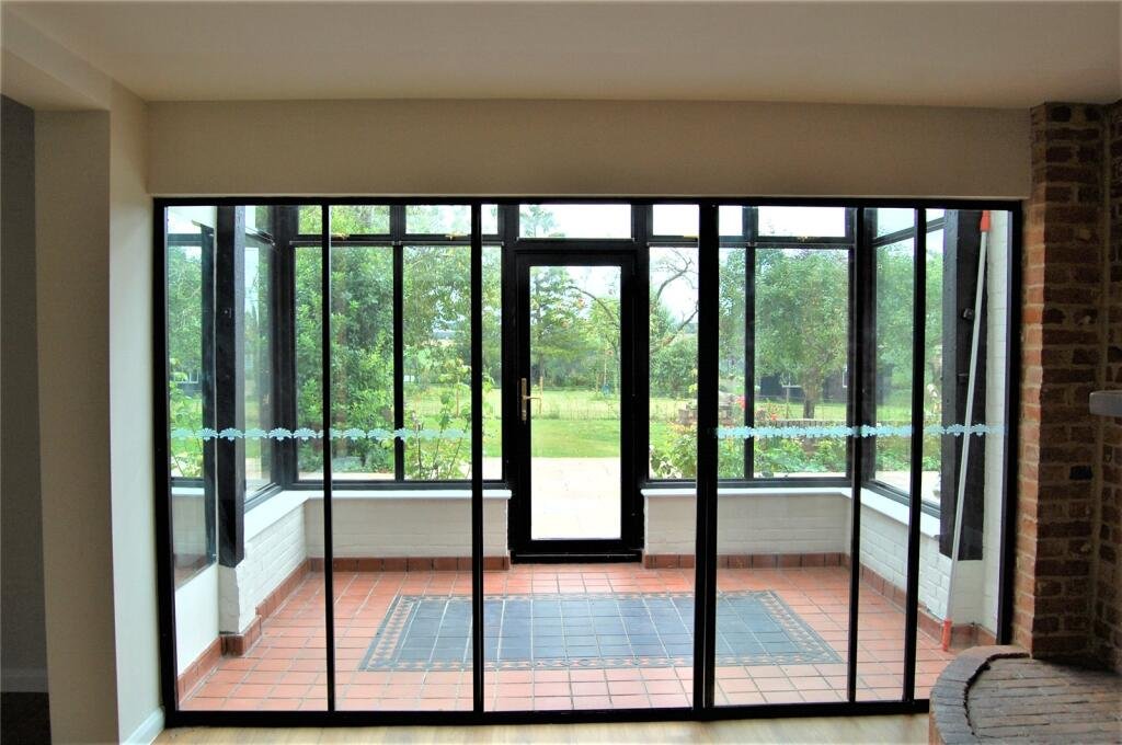 SITTING ROOM: 23’0 x 18’08 with wood burner in brick heath and wooden mantle, spacious understairs cupboard, window to front aspect, radiator, full length glazed doors and windows to: