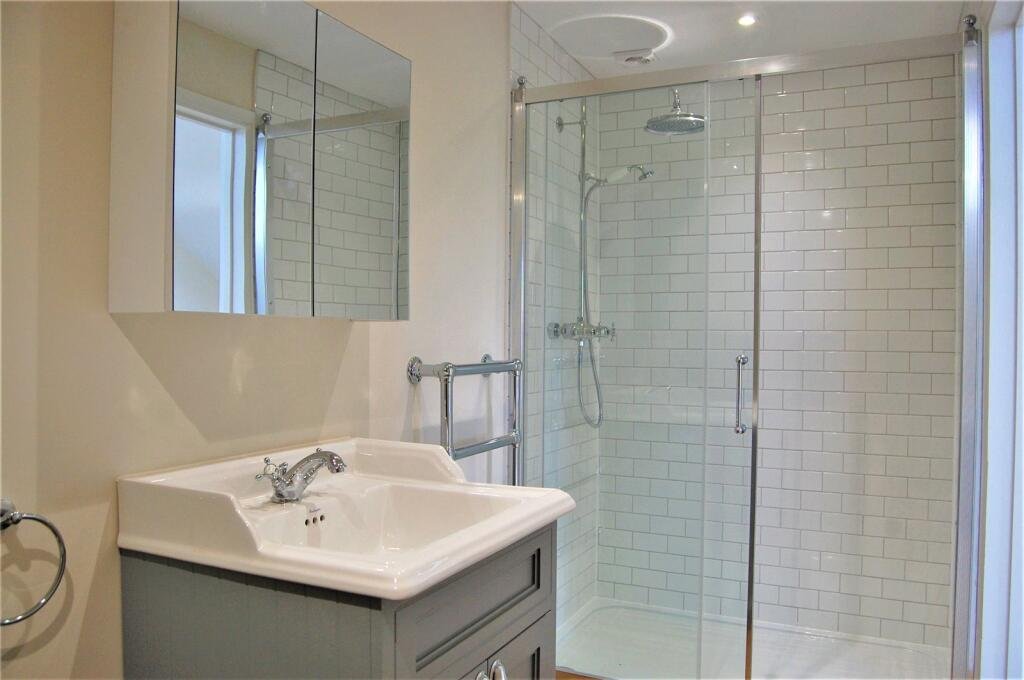 SHOWER ROOM: 10’03 narrowing to 8’00 x 3’07 with shower cubicle, W.C, pedestal washbasin, heated towel rail, window to side aspect.