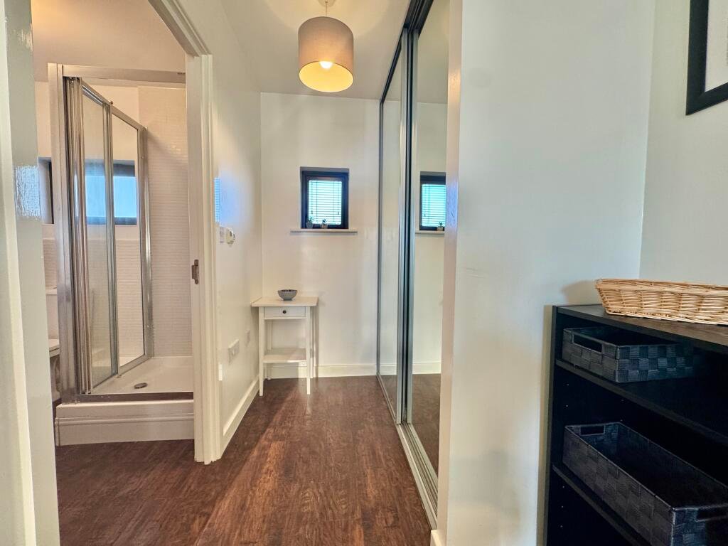 Principal Bedroom Window to rear aspect, mirror fronted double wardrobe and ensuite shower room:-