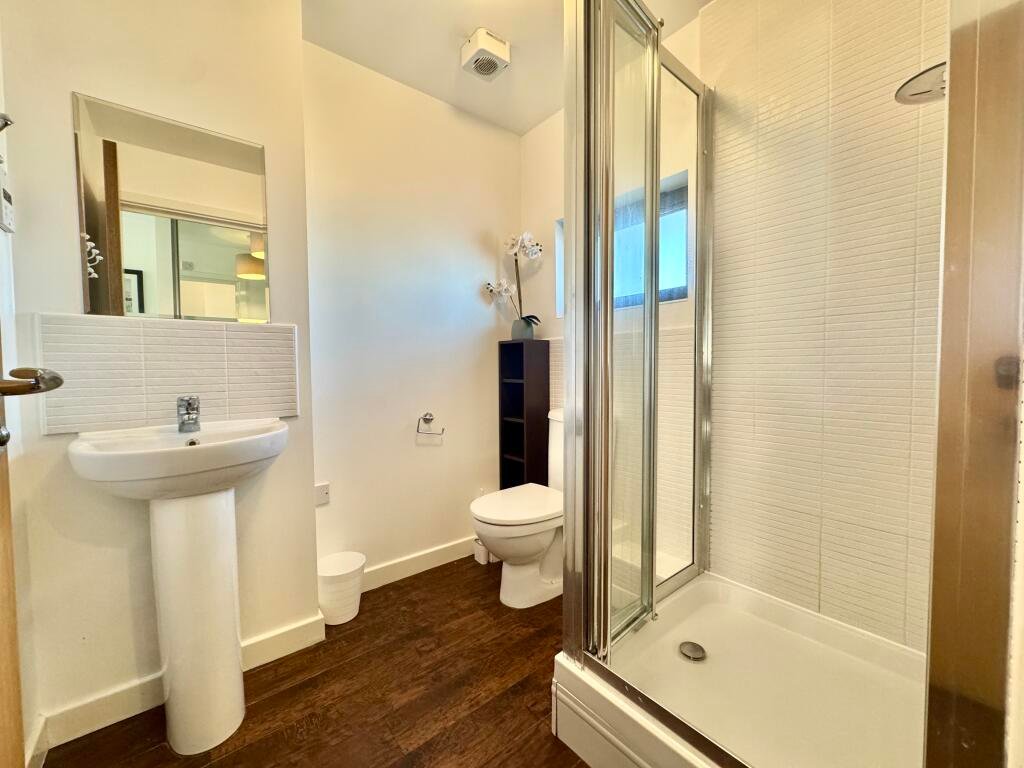 Ensuite Comprising of shower cubicle with mains fed shower, wash hand basin, W/C and extractor fan.