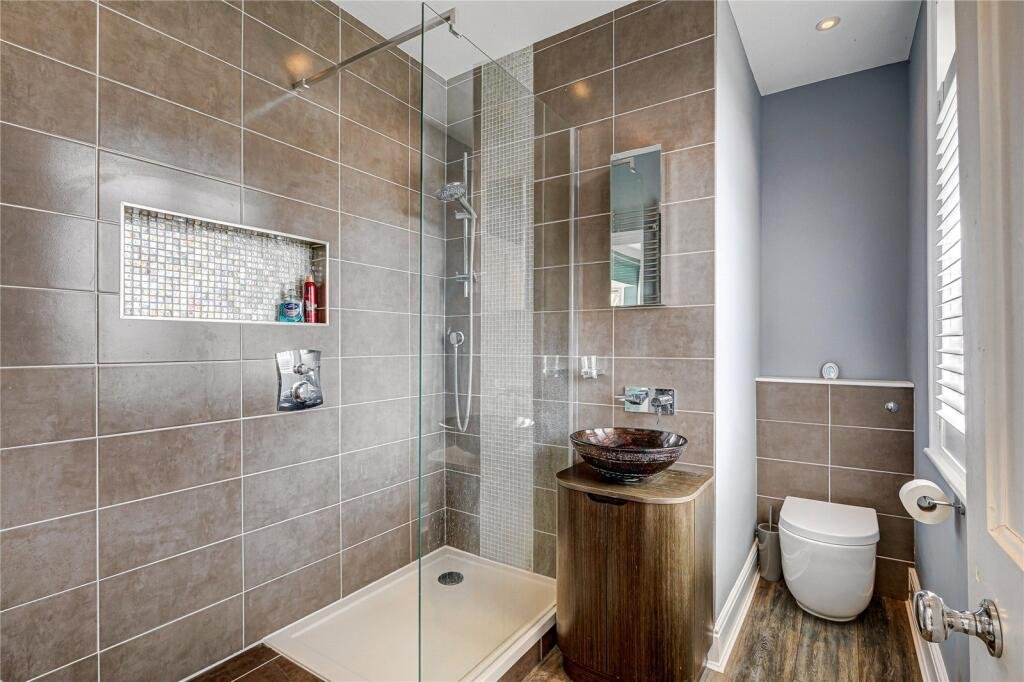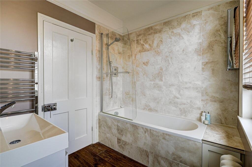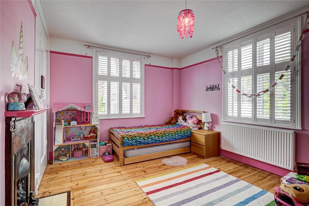 On the first floor the property has been altered to work with modern living. The principal bedroom is a fantastic room and like the living room features a bay window. An extensive range of wardrobes allows for plenty of hanging space and there is an en-suite fitted with a quality modern shower suite. Bedroom two is a lovely room with stripped floorboards and a rear aspect overlooking the garden whilst bedroom three, another double room, has a door leading out to the balcony. A fourth bedroom is currently used as an office and there is a beautiful bathroom with shower over the bath.