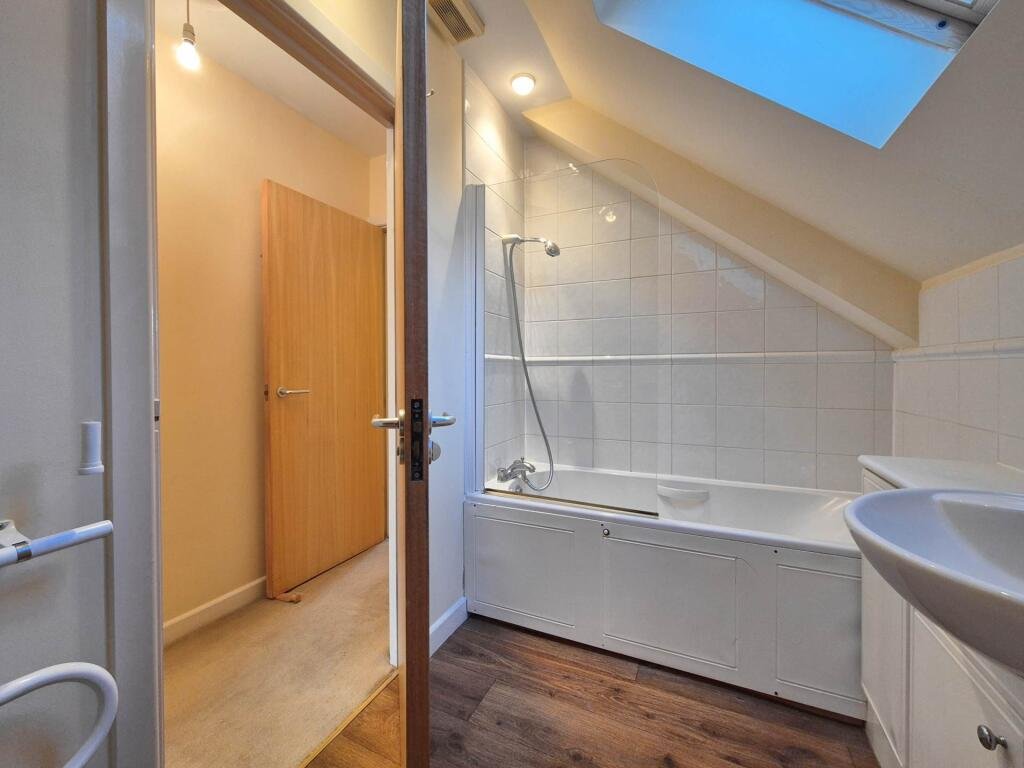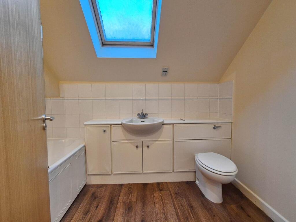 The main bathroom comprises of panel bath with shower over, wash basin toilet and