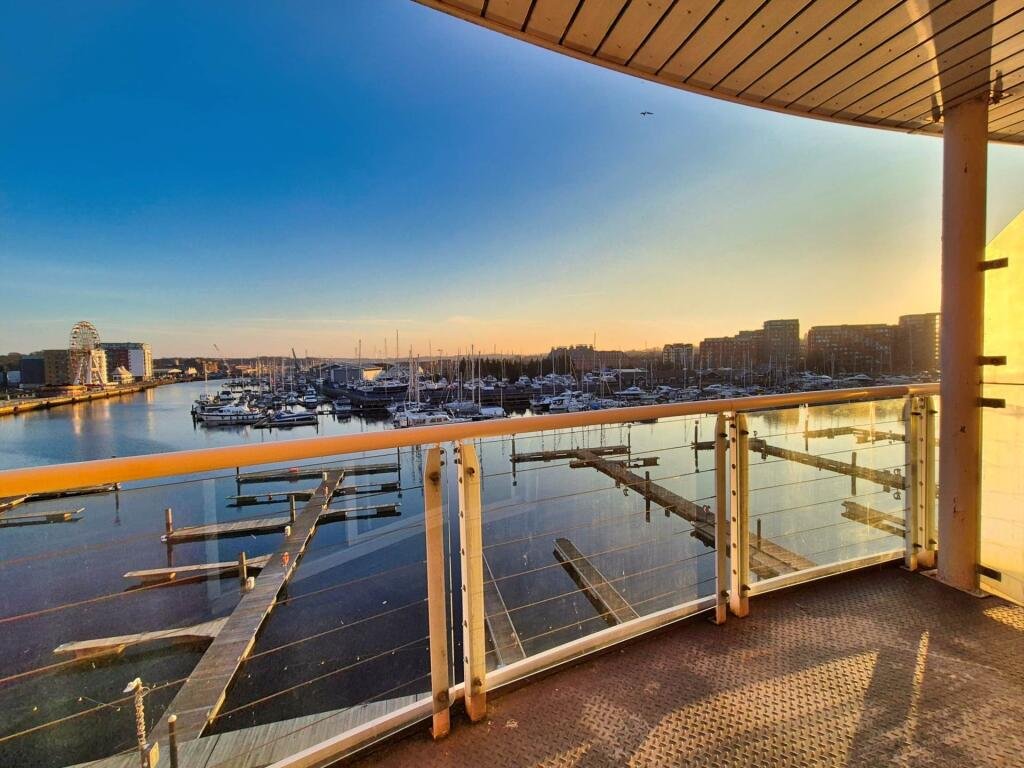 On the top floor you will find a small landing area with airing and storage cupboard. The second bedroom is carpeted with windows to the rear aspect. On the landing a separate door leads to a private hallway where there is another bathroom with shower over bath, wash basin, toilet, vanity cupboards, heated towel rail and skylight window. This hallway opens out in to a dressing area with built in mirrored wardrobes, then through to the huge master bedroom with its own private balcony and fantastic panoramic views of the waterfront.