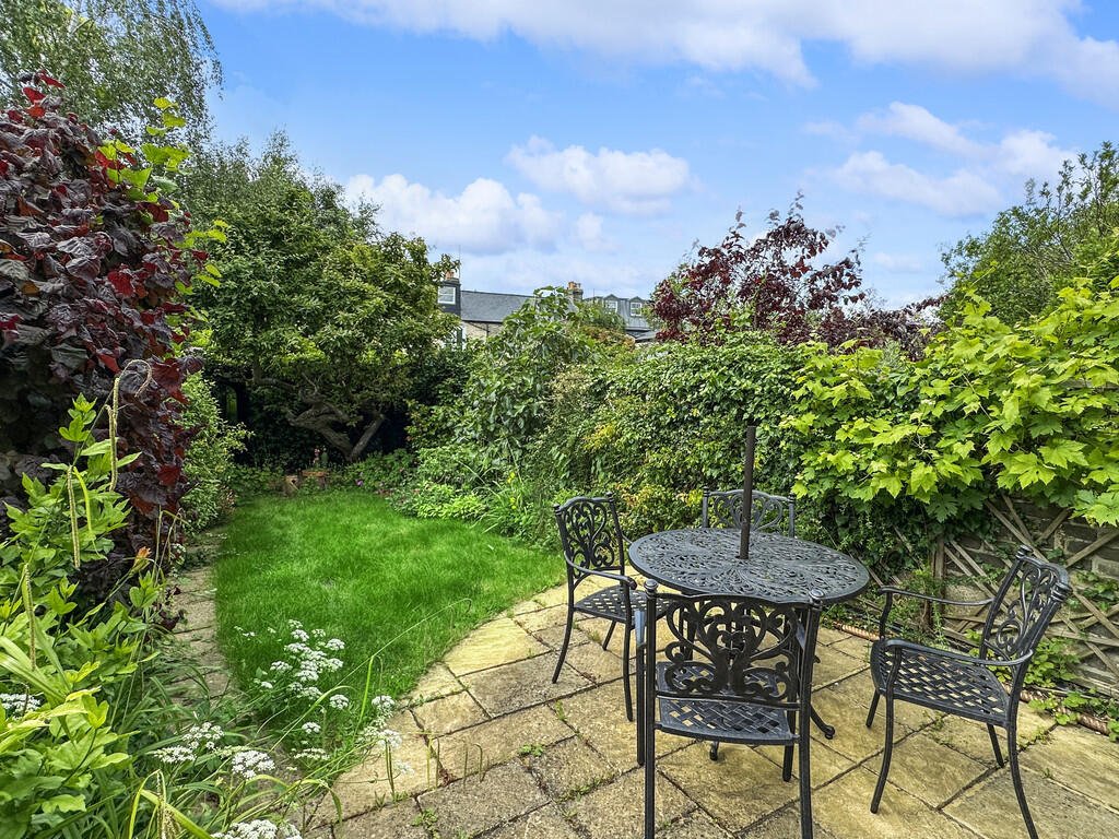 Outside is the welcoming enclosed garden. There is a rear and side block paved terrace that allow for a mixture of inside outside living, entertainment and al fresco dining. The central lawn is surrounded by mature shrubs, plants and trees. To the rear of the garden is the pergola, covered with flowering wisteria, providing a shaded area in summer months. There is a large shed, ideal for tools and bike storage and a secure pedestrian gate, leading to the rear access shared with the rest of the terrace.