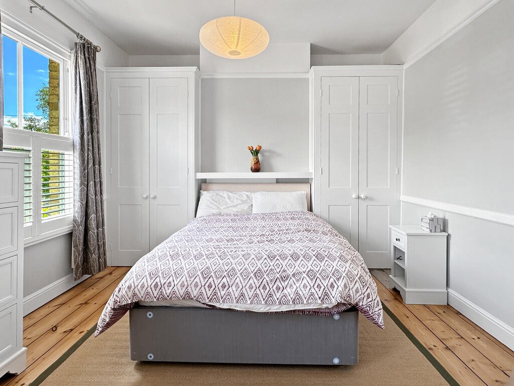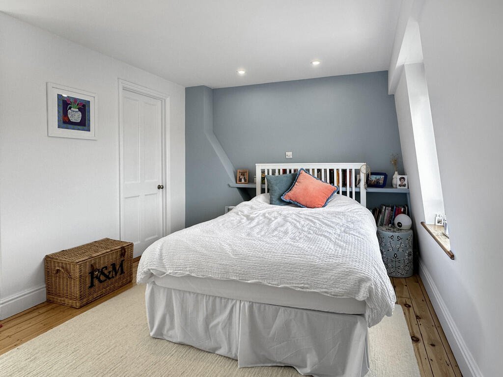 On the top floor, is the principal bedroom, which is well proportioned and private from the rest of the house. There is a side velux window and further built in storage. Connected is the ensuite shower room.