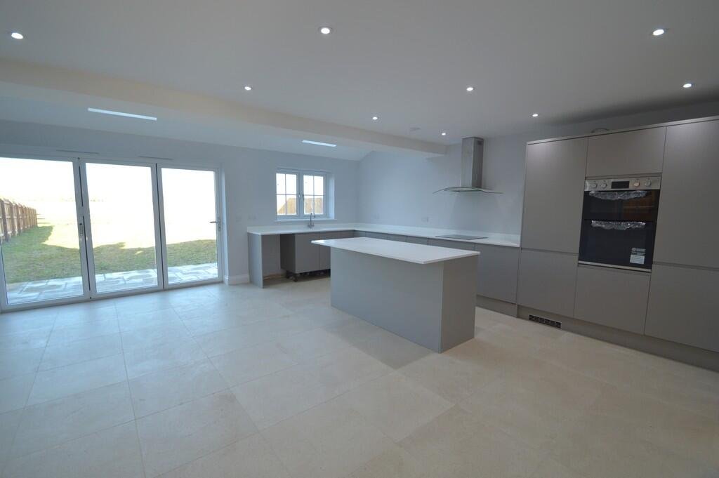 An oak door leads to the particularly impressive kitchen/breakfast/family room which has a part vaulted ceiling, bifold doors leading to an extensive terrace beyond which are beautiful field views, a tiled floor, and a particularly impressive kitchen with a range of floor and wall mounted units with quartz worktops and upstands, integral appliances to include an oven and separate grill, fridge/freezer, dishwasher, hob with extractor hood above, sink and drainer. There are two Velux roof lights making this a lovely bright room. A second oak door opens to a well-appointed utility room which is fitted with the same units and worktops as the kitchen and has space for a washing machine and tumble dryer and a door to the outside.