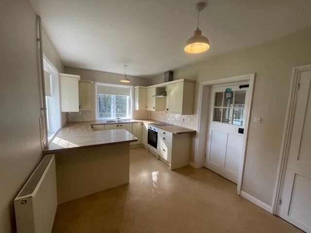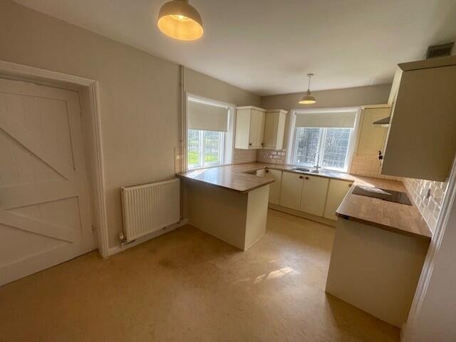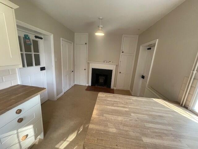Kitchen/Diner- fitted units and worktop, fitted electric oven and hob, stove, space for table and chairs, built in cupboard’s, laminate flooring.