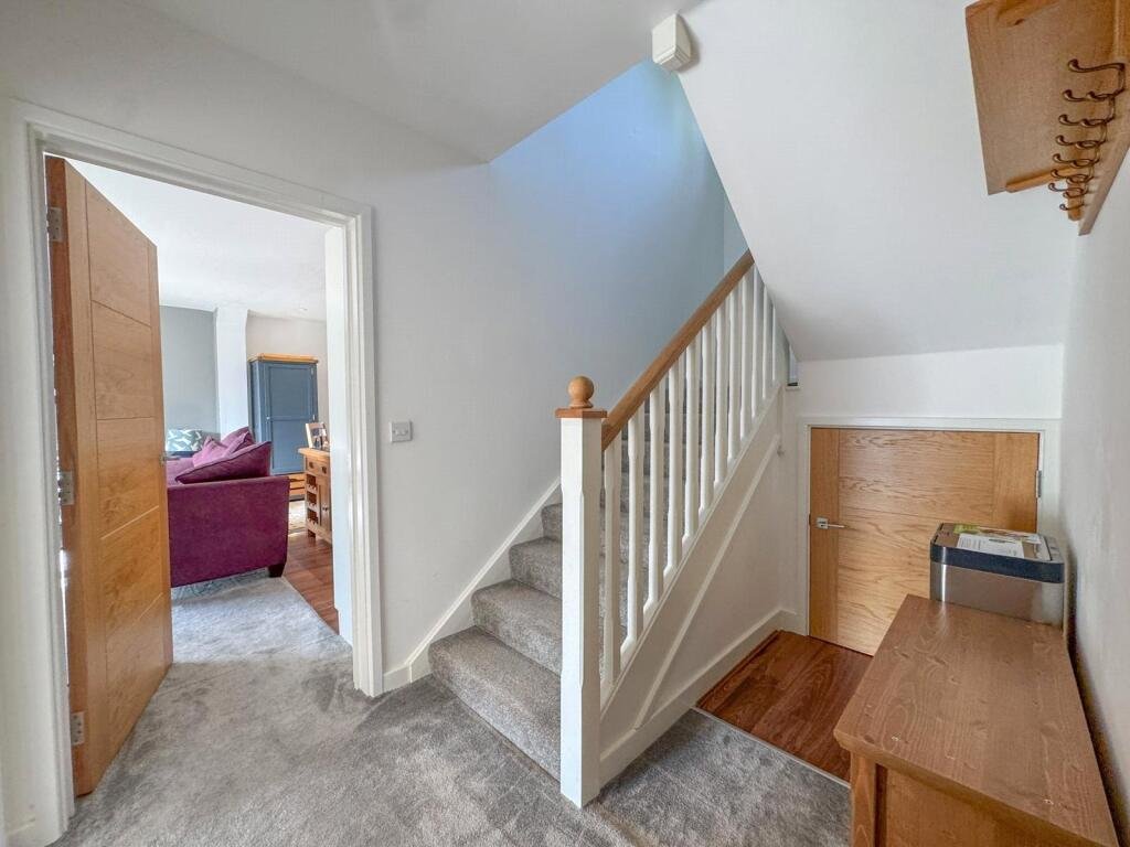Lower LevelEntrance Hall – With built-in storage cupboards, stairs rising to the first floor, and doors leading to: