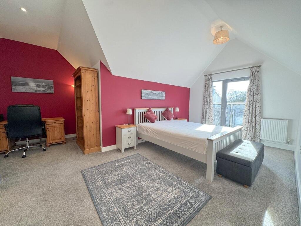 Upper LevelBedroom One – Spacious double bedroom with built-in wardrobes and dedicated office space, windows to the front aspect, and door leading to: