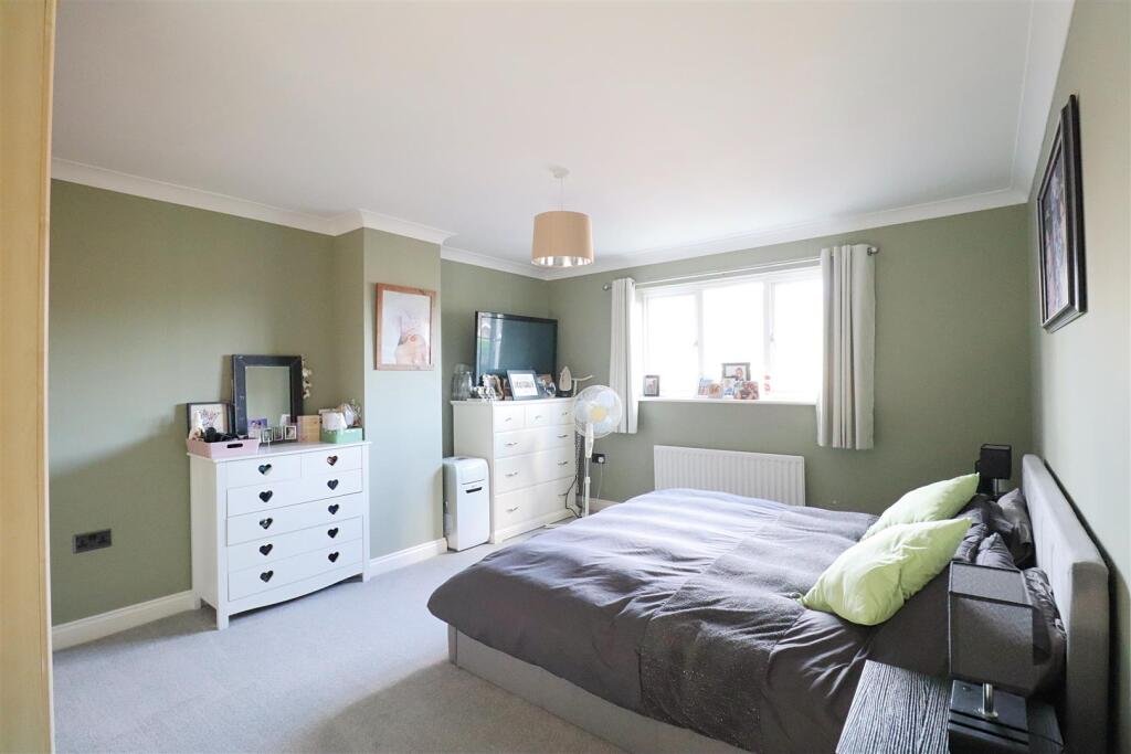 Bedroom One – 5.28 x 3.80 (17’3″ x 12’5″) – Carpet flooring, fitted wardrobe, window to rear