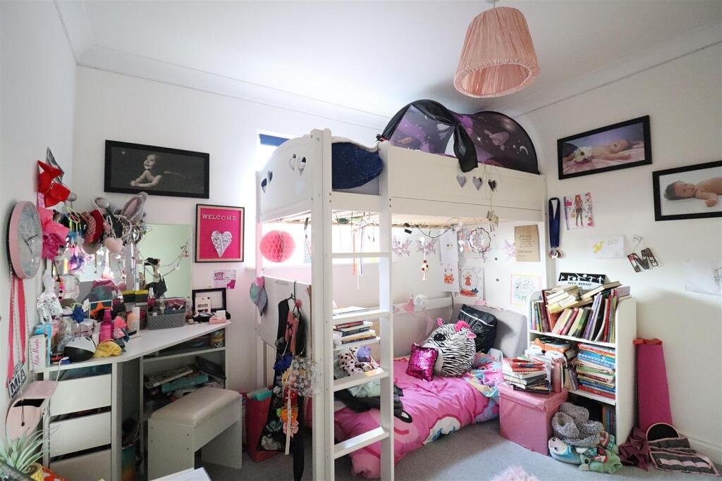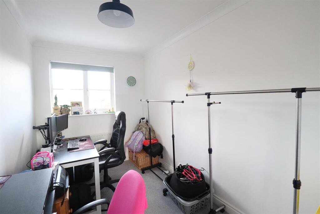 Study/Playroom – 3.23 x 2.66 (10’7″ x 8’8″) – Laminate flooring, bay window to front.