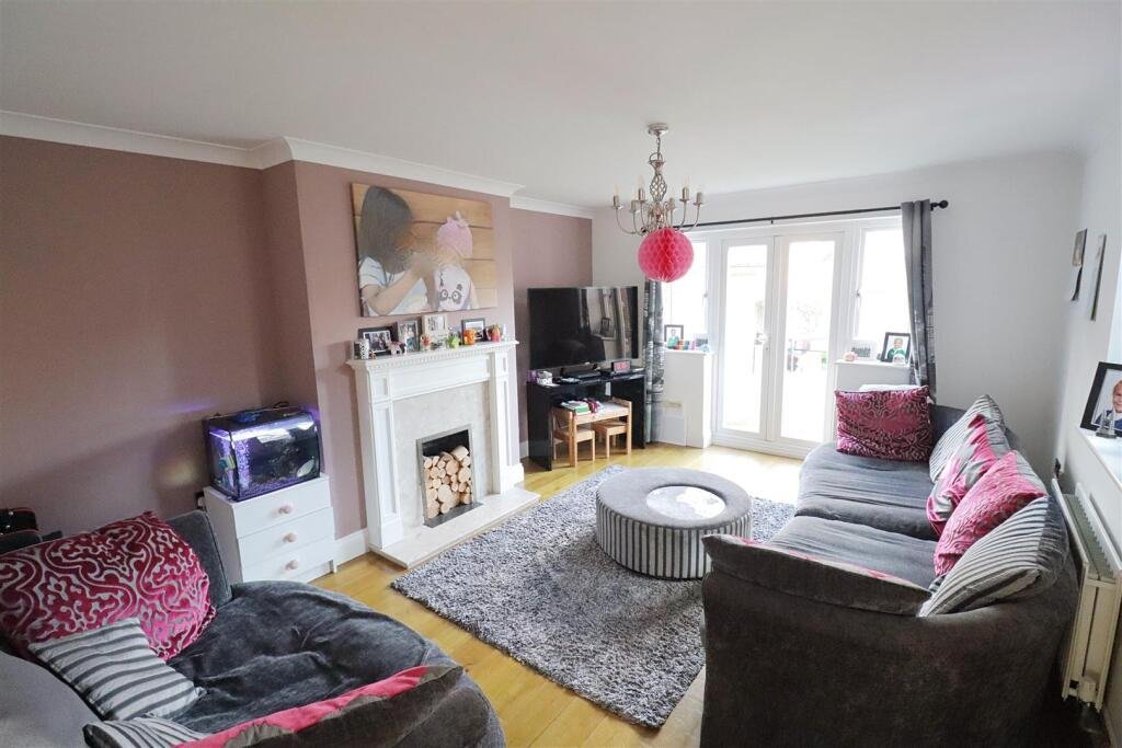 Lounge – 4.99 x 3.79 (16’4″ x 12’5″) – Laminate flooring, feature fireplace, patio doors leading to rear garden.