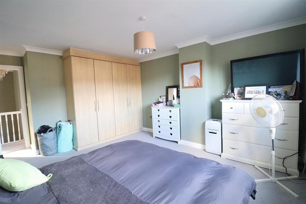 Landing – Carpet flooring, airing cupboard, window to front aspect, doors to;