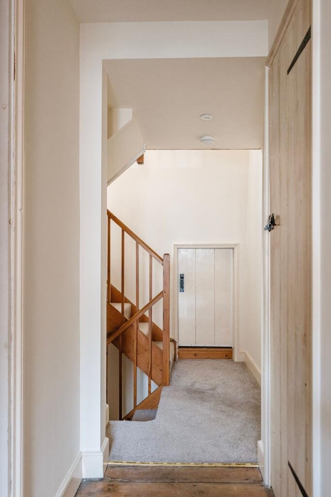 The second floor houses the master bedroom with a convenient en-suite WC, offering privacy and comfort. Throughout the property, original features such as exposed beams and classic sash windows highlight the townhouse’s historic charm.