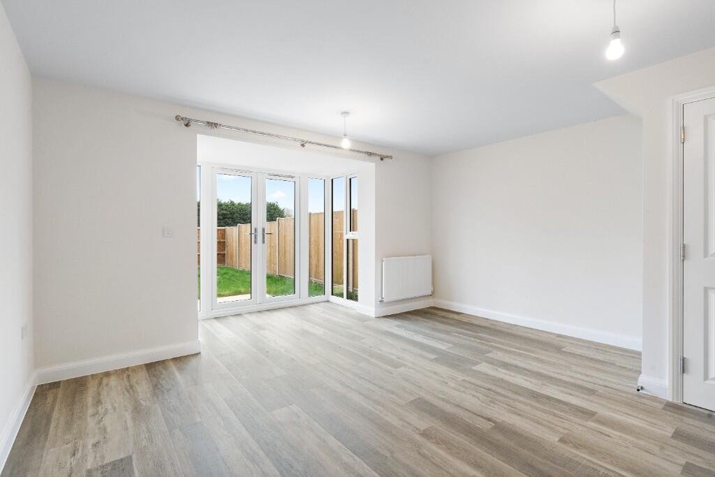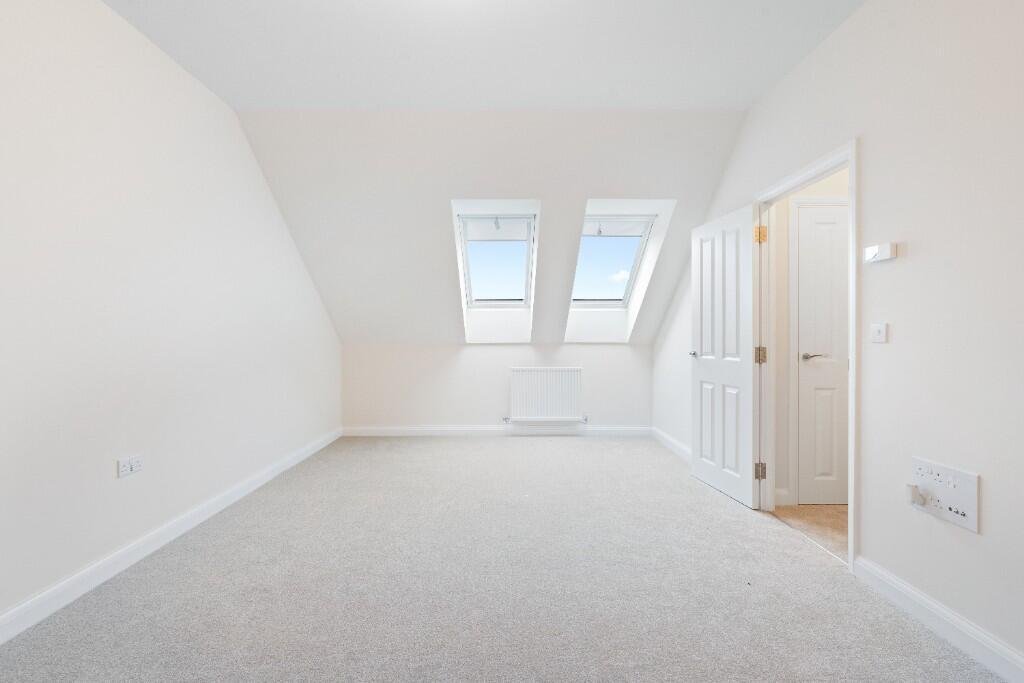 On the first floor, three well-proportioned bedrooms are arranged around a central landing, offering flexibility for family members, guests, or home working. A contemporary family bathroom serves this level, while built-in wardrobe space and additional storage ensure functionality throughout.