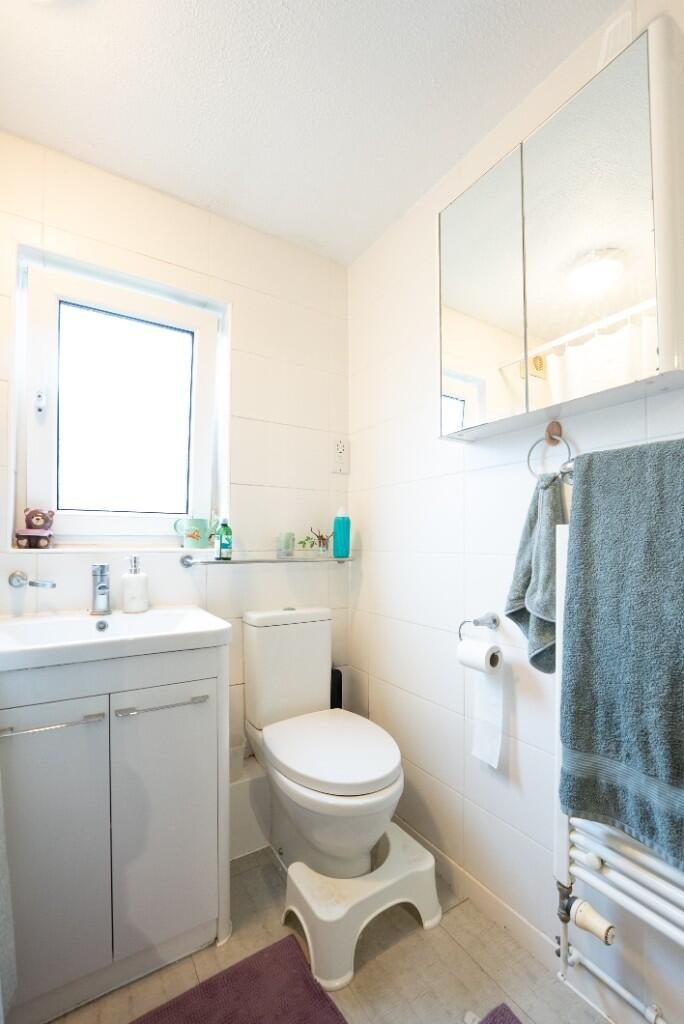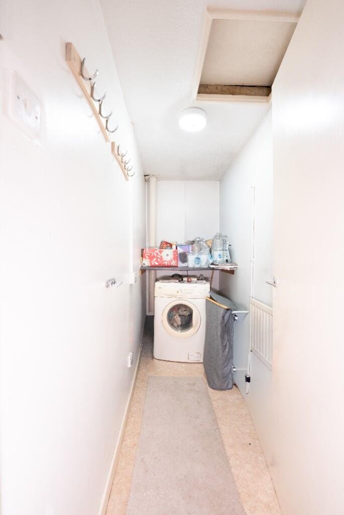 The living room is in a corner position, allowing plenty of light to shine through. Both bedrooms are very good sizes with built-in wardrobes. There is also a very deep storage room that can be used as a utility room.
