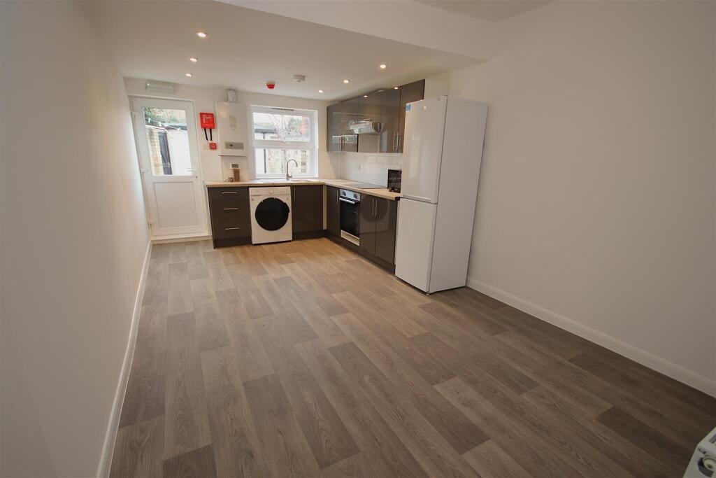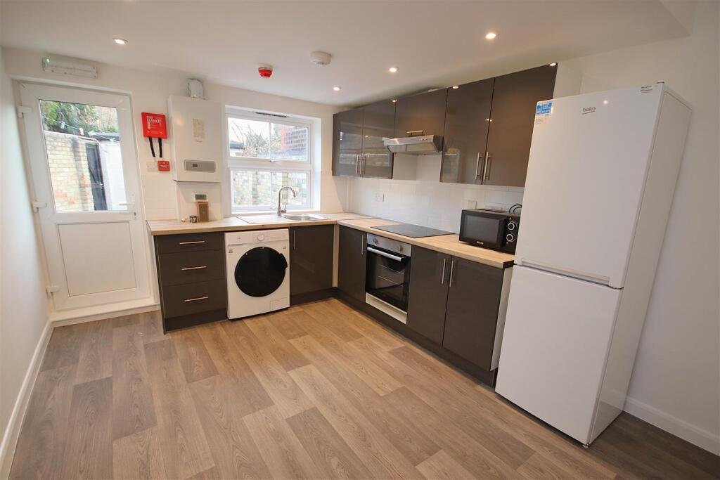 Kitchen/Living Room – 3.04 x 5.40 (9’11” x 17’8″) – Open plan kitchen/living area with back door leading to enclosed paved garden with side accessThe newly installed modern kitchen comes equipped with a washer dryer, microwave, electric hob and