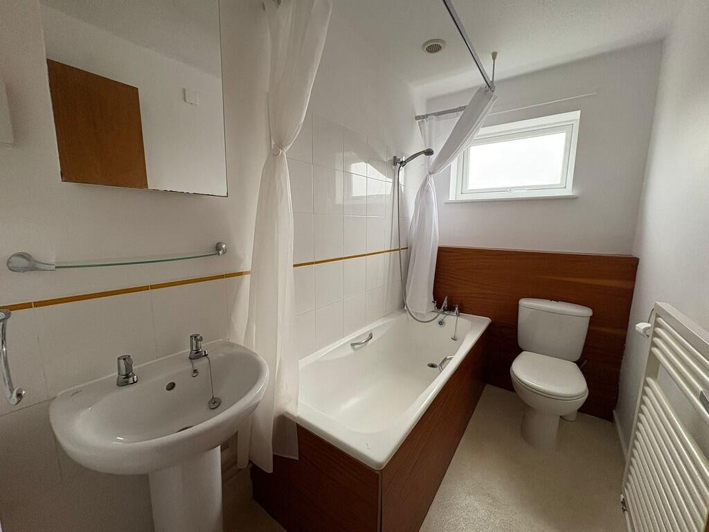 BATHROOM: White suite comprising of panel enclosed bath with shower attachment, pedestal wash hand basin with taps and low level toilet. Obscure uPVC double glazed window to side. White heated towel rail. Vinyl flooring. Part tiled walls. Mirrored wall cabinet.Â