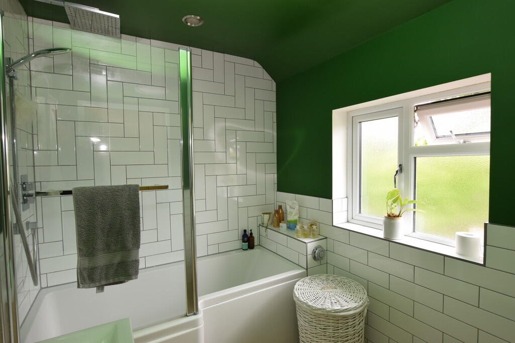 BATHROOM 8′ 03″ x 6′ 03″ (2.51m x 1.91m) White Bathroom Suite With Shower Over Bath: Window To Rear: Radiator.Â