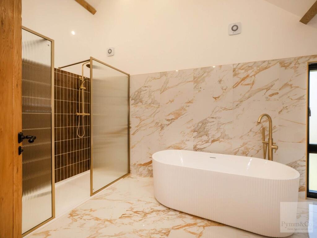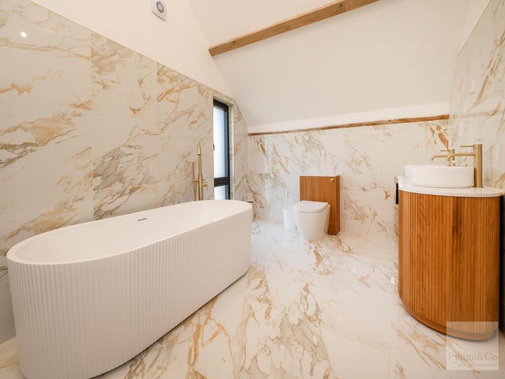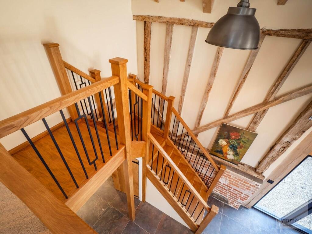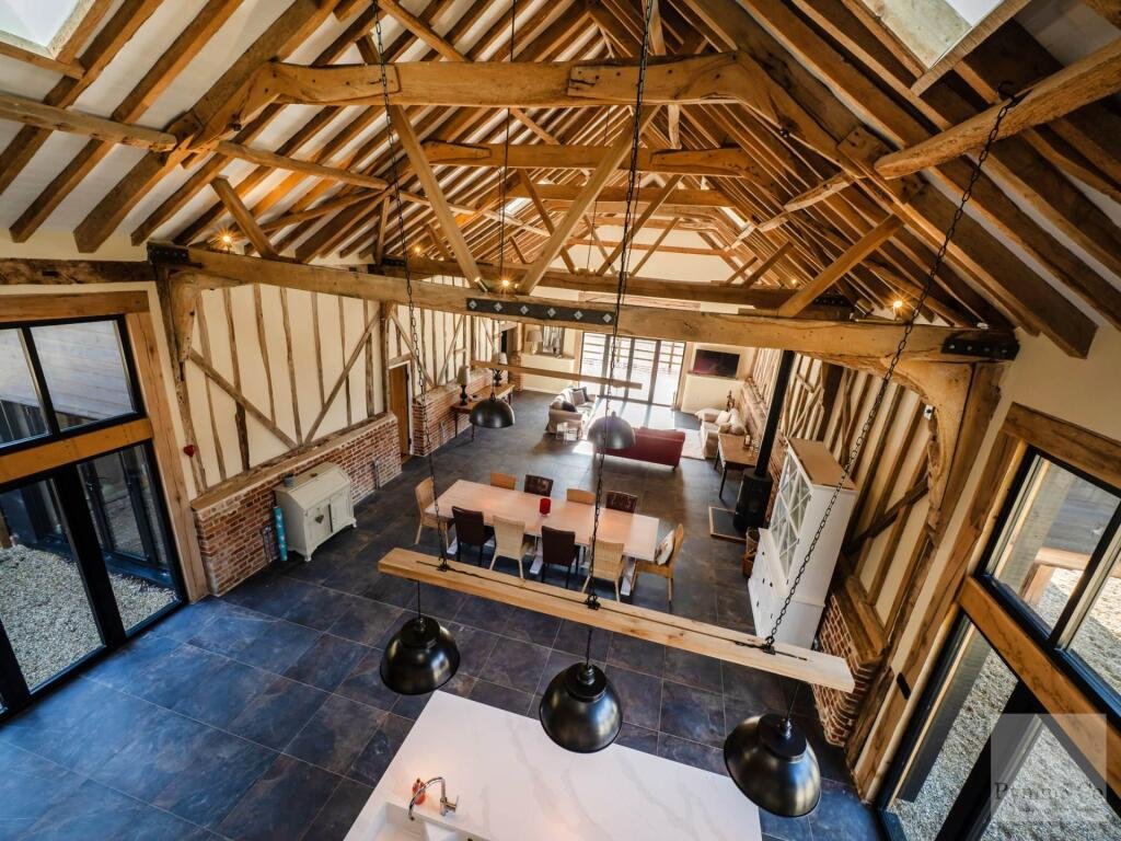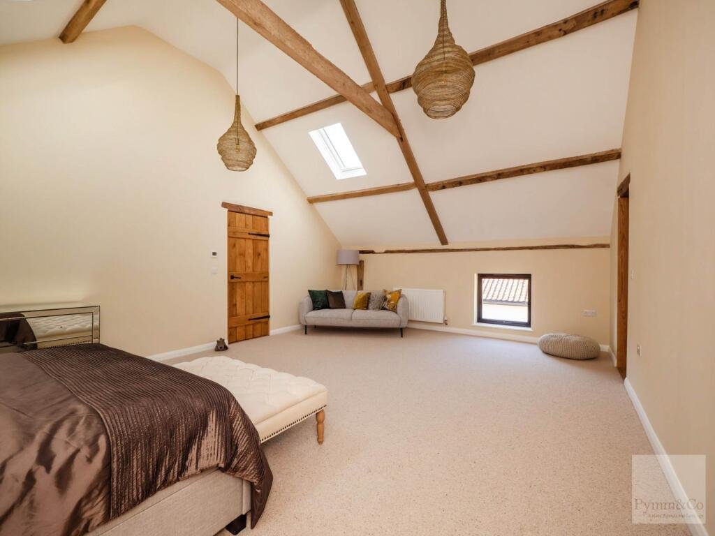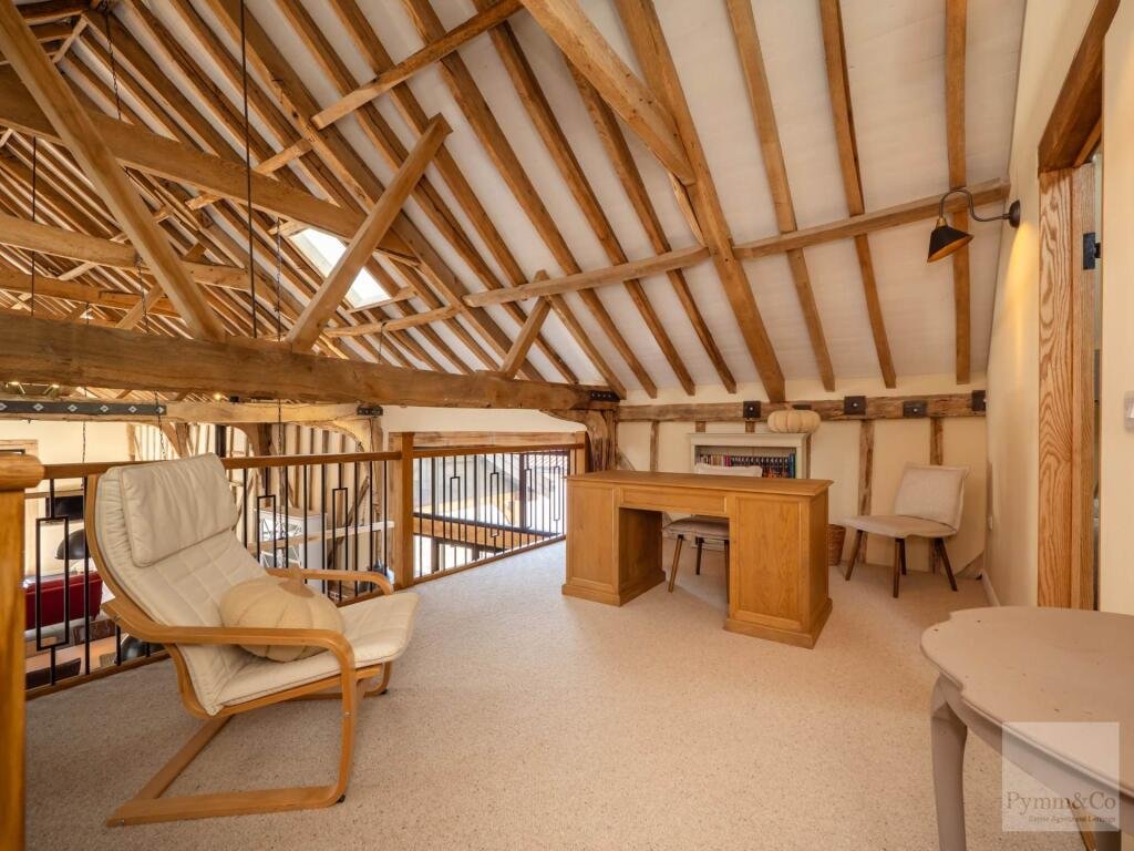 Additional features include an energy-efficient heat pump system, ensuring the property remains warm and comfortable year-round while minimising environmental impact and running costs. The combination of traditional oak framing and modern heating technology exemplifies the thoughtful balance of old and new that defines this home.