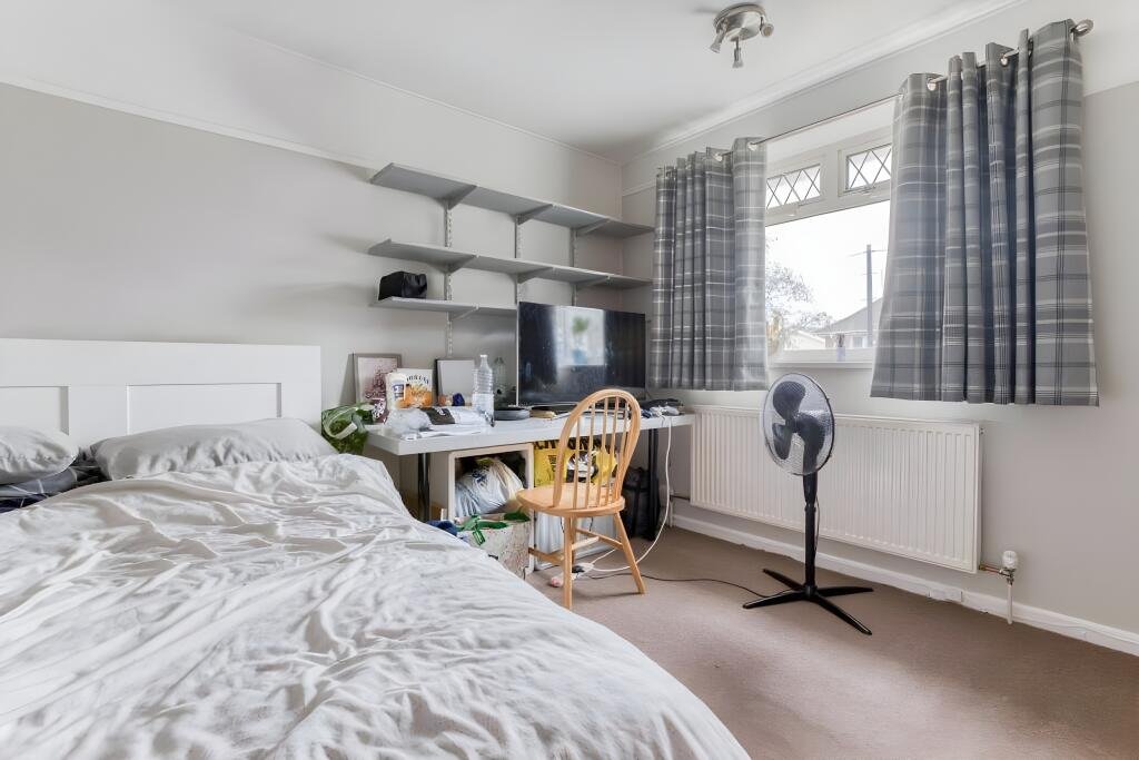 Bedroom One (Large Double) 12’2” x 8’9”Window to the front aspect, fitted wardrobe. Double bed, desk, chest of drawers, bedside table, shelves. Carpeted.