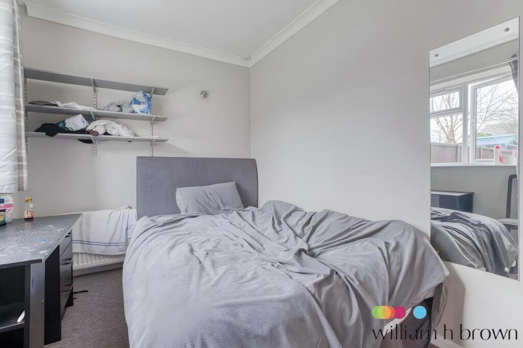 Bedroom Three (Single) 11’5” x 6’6”Window to rear aspect. Single bed with storage drawers, built-in desk and shelves, bed-side table. Carpeted.