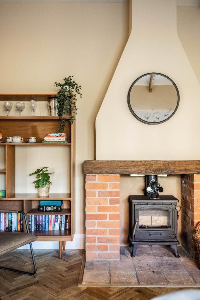 As you step outside, you’ll be greeted by open fields to the rear of the property, offering an idyllic view and a sense of tranquillity along with a log store.