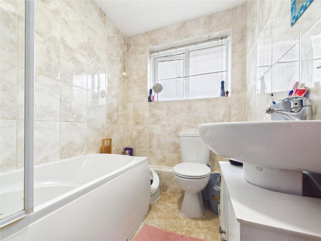 On the first floor there are three bedrooms. Two of which are double size and the third being a small single or ideal study. Accommodation concludes with a modern bathroom suite which is fully tiled and includes panelled bath with shower above, wc and hand wash basin.