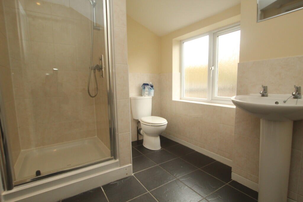 BATHROOM Obscured double glazed window to rear aspect, double panelled radiator, shower cubicle, low level wc, pedestal mounted wash hand basin, ceramic tiled floor.Â
