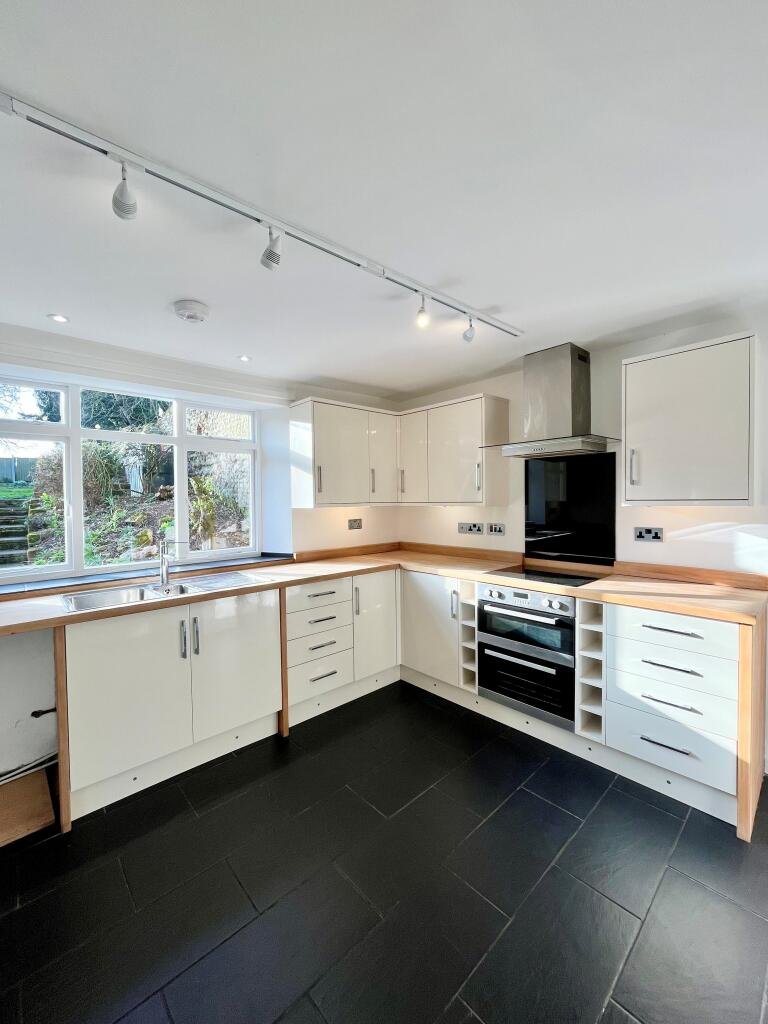 Kitchen 3.80m x 3.62m:Rear-facing window, offering wall and base level kitchen units, double drainer stainless steel sink, cooker with extractor and space for a fridge and a dishwasher. Door leading