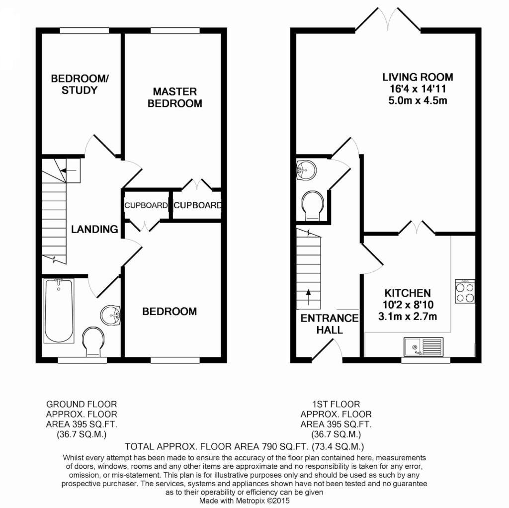 Ground floor: Entrance Hall. Kitchen. Dining/Living Room. WC.First floor: Main bedroom, fitted wardrobe. Double bedroom, fitted wardrobe. Single bedroom/Study. Bathroom. Airing cupboard.Outside: Side access to private, enclosed, easily manageable rear garden. Communal landscaping to front.