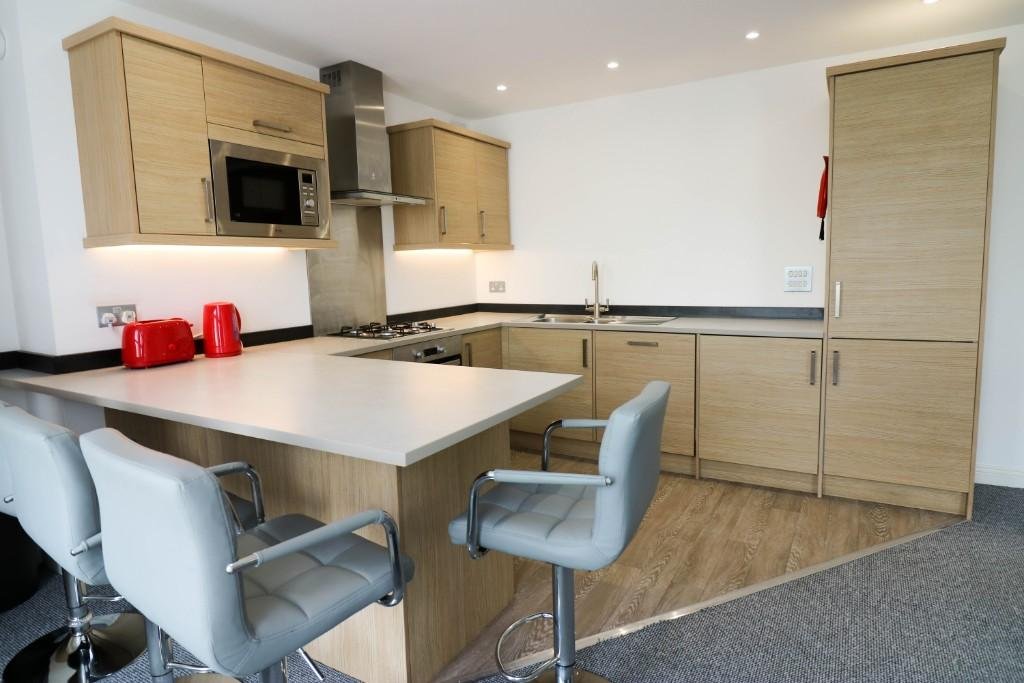 The property comprises of four double bedrooms with two modern communal bathrooms. The flat is fully furnished with each bedroom having a double bed and desk. Alongside this, the kitchen is fully fitted with all white goods and appliances, which is perfect for students!