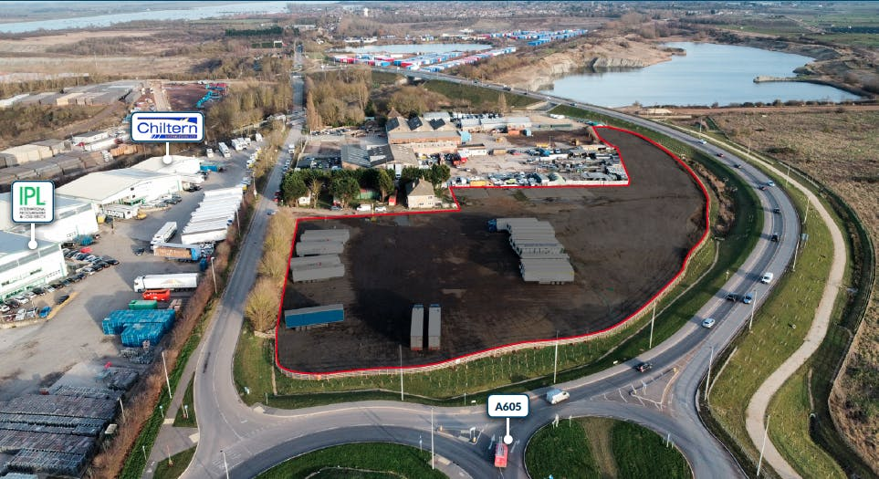 Plot A comprises B8 open storage land accessed from the newly created A605 bypass road.