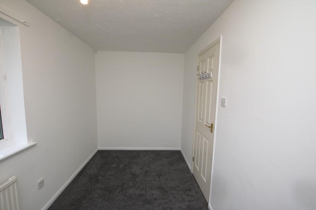 Upvc Front door, Carpeted entrance, door to storage cupboard, door to living room.