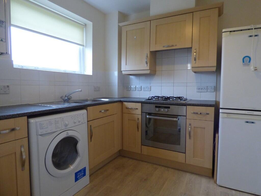 A separate kitchen area with fitted appliances. This includes an electric fan-assisted oven, gas hob, extractor, washer dryer, fridge freezer and plenty of cupboard/surface space.