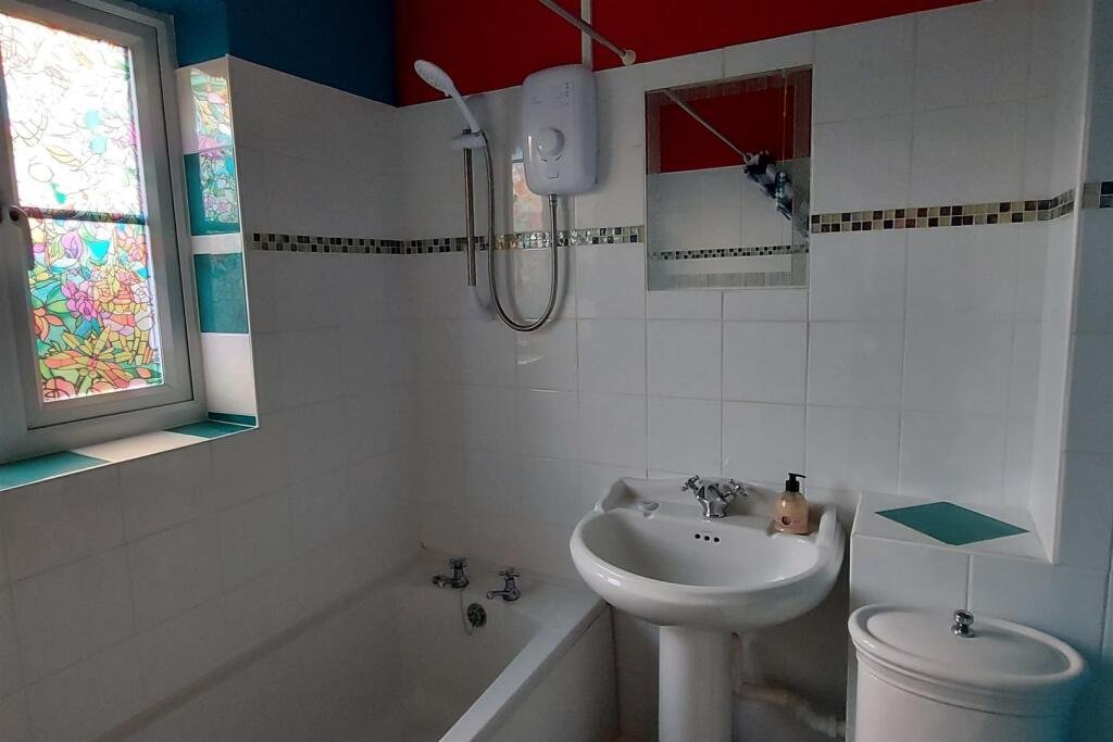 Bathroom – White suite comprising of panelled bath with electric shower over, Low level wc and pedestal washbasin, UPVC double glazed window to rear, Vinyl flooring.