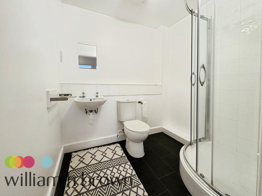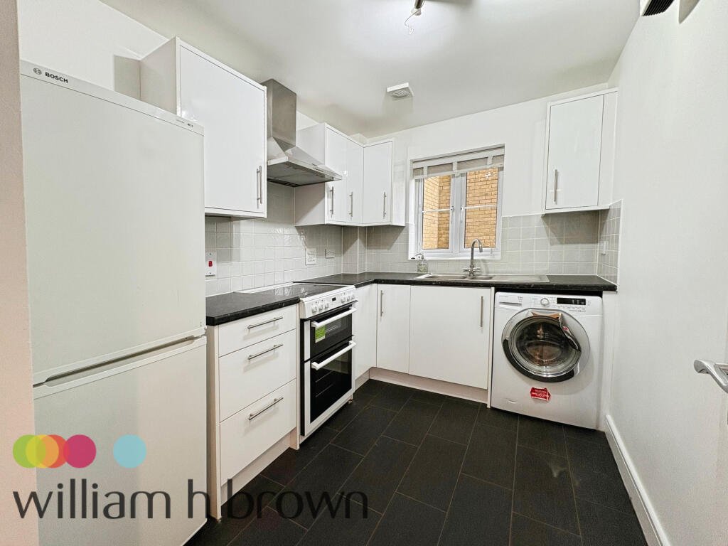 surfaces, a stainless steel sink with mixer taps, and comes complete with a freestanding cooker, overhead extractor fan, Hoover washer/dryer, and fridge freezer.There are two bedrooms, with the main bedroom being generously sized and the second ideal as a guest room or home office. The family shower room includes a walk-in shower cubicle, wall-mounted hand wash basin, and low-level WC.Externally, the property benefits from an allocated parking space and access to well-maintained communal gardens, with a play park conveniently located adjacent to the property. Double-glazed windows throughout add to the comfort and efficiency of this home.