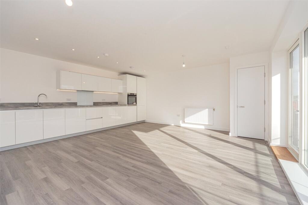 This well-presented property has a stylish open-plan kitchen and living/dining area fitted with Amtico flooring, a large window and glass door leading out onto the balcony. The kitchen features bespoke fitted white handleless units with a stone worktop, a stainless-steel sink, and a full range of integrated appliances including a hob with extractor fan hood, single oven, dishwasher and fridge/freezer. There is a double bedroom with fitted carpets and window to the rear aspect, a bathroom with tiled flooring and walls, heated towel rail, bath with chrome mixer/shower and glass screen, W.C. and basin with mirror and shaver socket above. In addition, there is a store cupboard with washing machine, one allocated secure parking space, and spacious balcony.